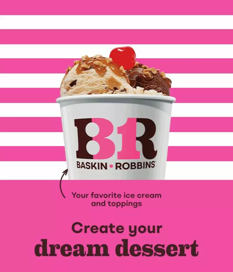 Visit your local Baskin-Robbins at 6127 FM 2920 Rd, Spring, TX — your destination for premium ice cream, frozen desserts, and custom cakes. Baskin-Robbins features its world-famous 31 flavors, with rotating selections and endless combinations available every day. Enjoy hand-scooped ice cream, specialty sundaes like the Banana Royale, Brownie Sundae, and Banana Split, plus a full lineup of beverages including Mangonadas, Milkshakes, Smoothies, Floats, Fizzes, and Cappy Blasts. Customize your celebration with made-to-order ice cream cakes or take home Pre-Packed Quarts, Fresh Pack Quarts, Polar Pizza® Ice Cream Treats, Boxed Novelty Bars, DIY Kits, Creature Creations®, and Fresh Baked Waffle Cones. Every visit is a reason to Seize the Yay™ — order online or through the BR Rewards App for pickup or delivery.